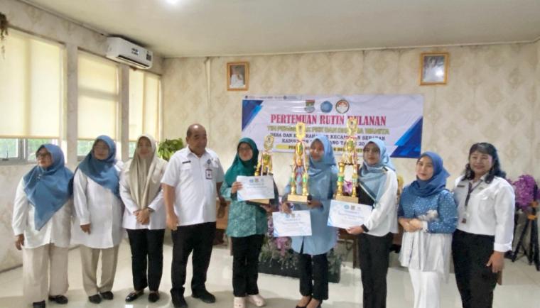 Penghargaan yang diberikan berupa trofi dan sertifikat sebagai bentuk apresiasi atas upaya dan kinerja desa dalam meningkatkan pelayanan posyandu.